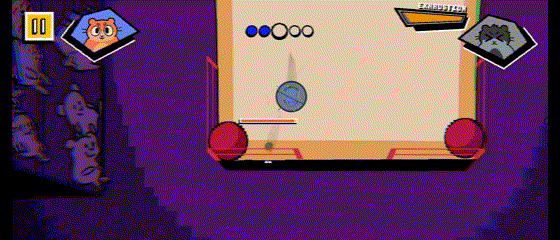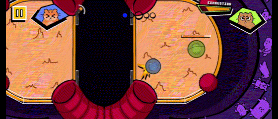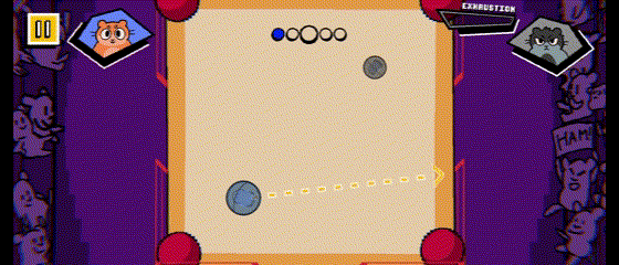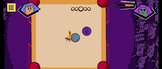 One of the unique aspects of Hamster Ball Blitz's combat is the edge of the stage. When a hamster would fall out of the arena at a low speed, they instead teeter on the edge. While teetering, the player can tap rapidly to save themself from falling. If a teetering hamster is hit by their opponent, they will be knocked out. This is a feature that I programmed.